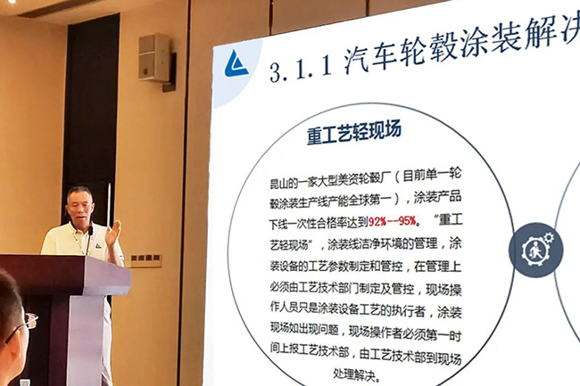 提到“重工藝輕現場”的管理概念時,聯德(廣州)機械總經理葉均明先生現場舉例,據介紹,該項目由聯德公司參與設計,正式投產后,獨立一條SUV規格輪轂,生產線產能達到300萬只/年,年節約制造成本1857萬元,生產效率提高約10%,年度總經濟效益合計4257萬元,且提高了粉末及油漆利用率、減少了生產線人員數量和人員勞動強度,產生了極大的社會效益。因此他號召,汽車零部件企業應改變目前對涂裝管理模式“重現場輕工藝”的思維,提倡“重工藝輕現場”的數字化管理模式,從而進一步推進我國汽車零部件企業智能化數字化轉型升級,實現汽車零部件企業的綠色高質量發展。