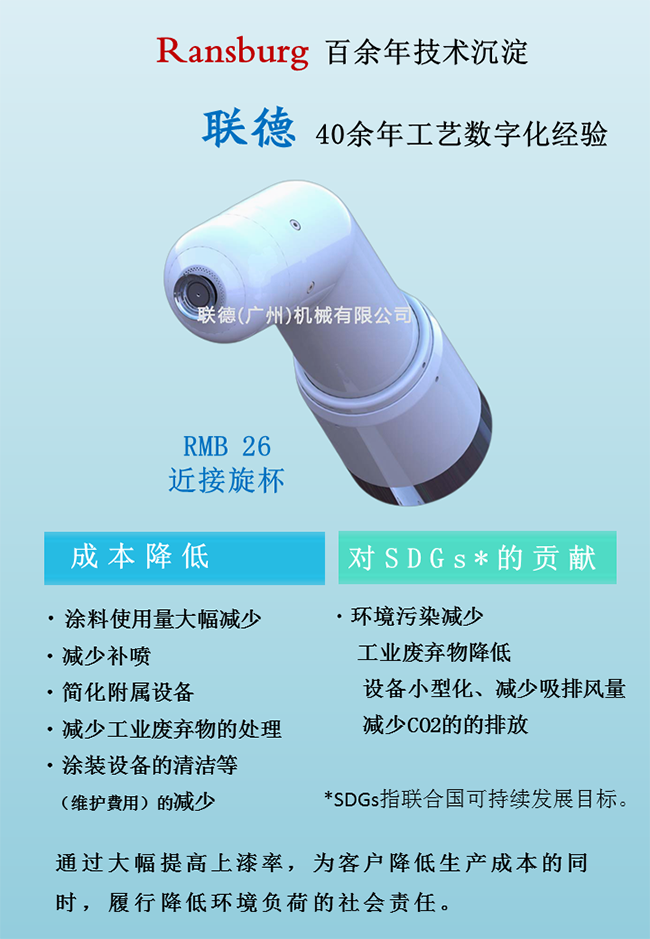 除工藝介紹外,聯德此次帶來的蘭氏新品旋杯RMB26,也引起了汽車零部件企業的重點關注。葉總介紹,RMB26近接旋杯,融合了“蘭氏百余年的靜電技術積累”和“聯德40多年的工藝數字化經驗”,能夠有效地提高汽配企業的生產效率和產品品質,減少人工成本,解決產品品質難以控制、人工成本過高的難題。同時,它也可以幫助汽配企業減少固體廢棄物的處理和環境保護的費用,是一種既有良好經濟效益,又有至佳社會效益的創新產品。此外,對整個生產流程的安全、穩定程度也將大幅提升。