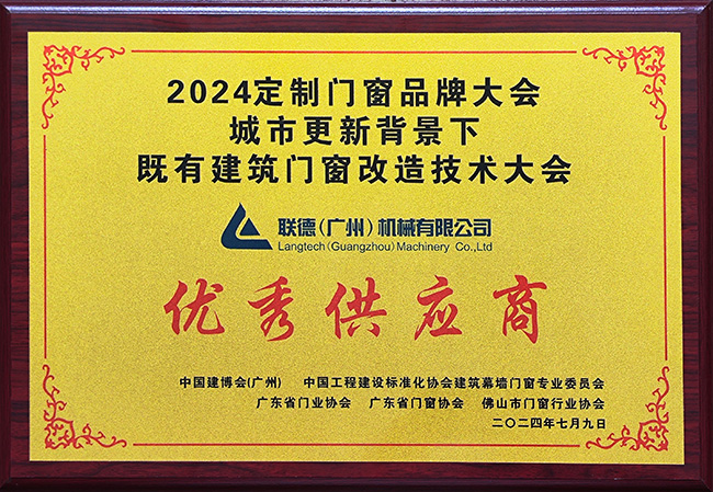 7月9日,2024定制門窗品牌大會在廣交會堂二樓會議廳隆重舉行。本次活動在門窗建材行業(yè)里引發(fā)了廣泛關(guān)注。300余位來自全國各地的門窗行業(yè)精英齊聚一堂。聯(lián)德(廣州)機械受邀盛裝亮相此次品牌大會,并榮獲中國建博會(廣州)、中國工程建設(shè)標準化協(xié)會建筑幕墻門窗專業(yè)委員會、廣東省門業(yè)協(xié)會、廣東省門窗協(xié)會、佛山市門窗行業(yè)協(xié)會聯(lián)合頒發(fā)的“優(yōu)秀供應(yīng)商”稱號。