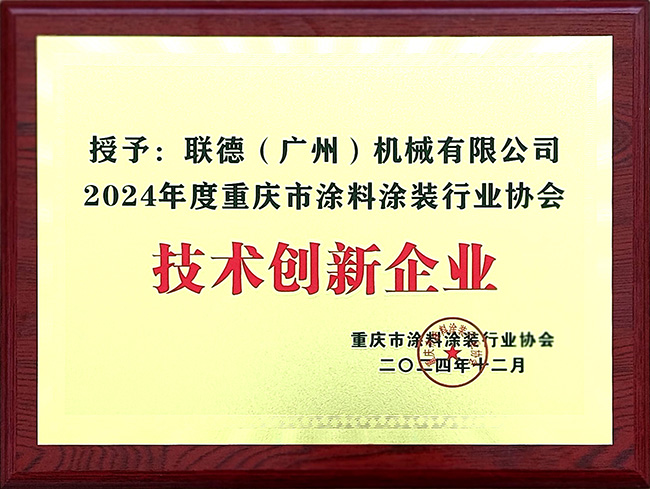 值得一提的是,憑借在涂料涂裝技術領域的持續創新和卓越貢獻,聯德(廣州)機械在本次活動中榮獲了重慶涂料行業協會頒發的技術創新企業榮譽稱號。這一殊榮是對聯德(廣州)機械多年來堅持技術研發、不斷追求創新的高度認可,也是對聯德在推動涂裝行業技術進步方面所做努力的充分肯定。