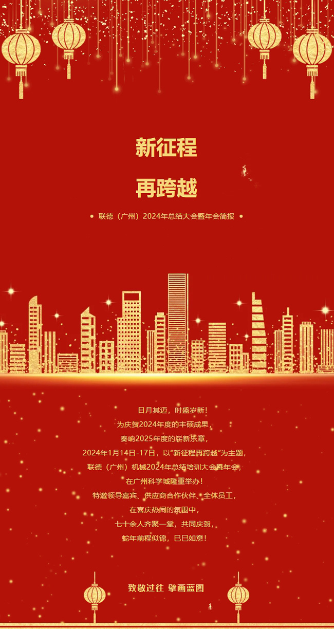 在2025年1月14日至17日期間,聯德(廣州)機械有限公司在廣州總部成功舉辦了盛大的2024年度總結會議、表彰大會及年會活動。本次活動不僅涵蓋了技術培訓、職業素養提升、ISO質量管理體系教育和消防演習等多方面內容,還吸引了公司各個部門的積極參與,共同回顧了過去一年的成績,并規劃了未來的發展藍圖。