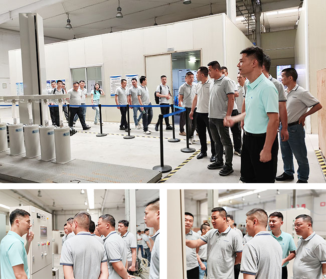 銷售工程師楊工帶領嘉寶莉團隊參觀聯德工廠的核心生產區域,實地考察使嘉寶莉團隊直觀了解了聯德涂裝設備在實際生產環境中的運行狀態和集成邏輯。同時,嘉寶莉工程師利用參觀間隙,高效完成了下午噴涂實驗所需工件的打磨準備工作。
